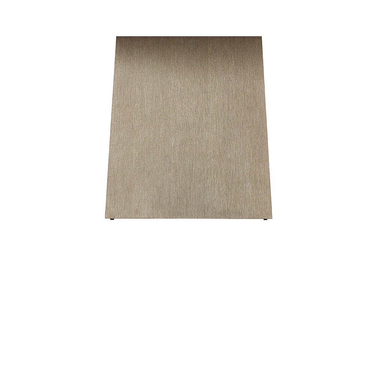 La table à manger moderne en chêne gris avec plateau en quartz est l'incarnation même de la forme et de la fonctionnalité. Cette table rectangulaire présente un magnifique plateau en quartz. Quartz Gan Edan et placage de chêne à coupe droite en quart de pièce fabriqué à la main pour la base de style tréteau.