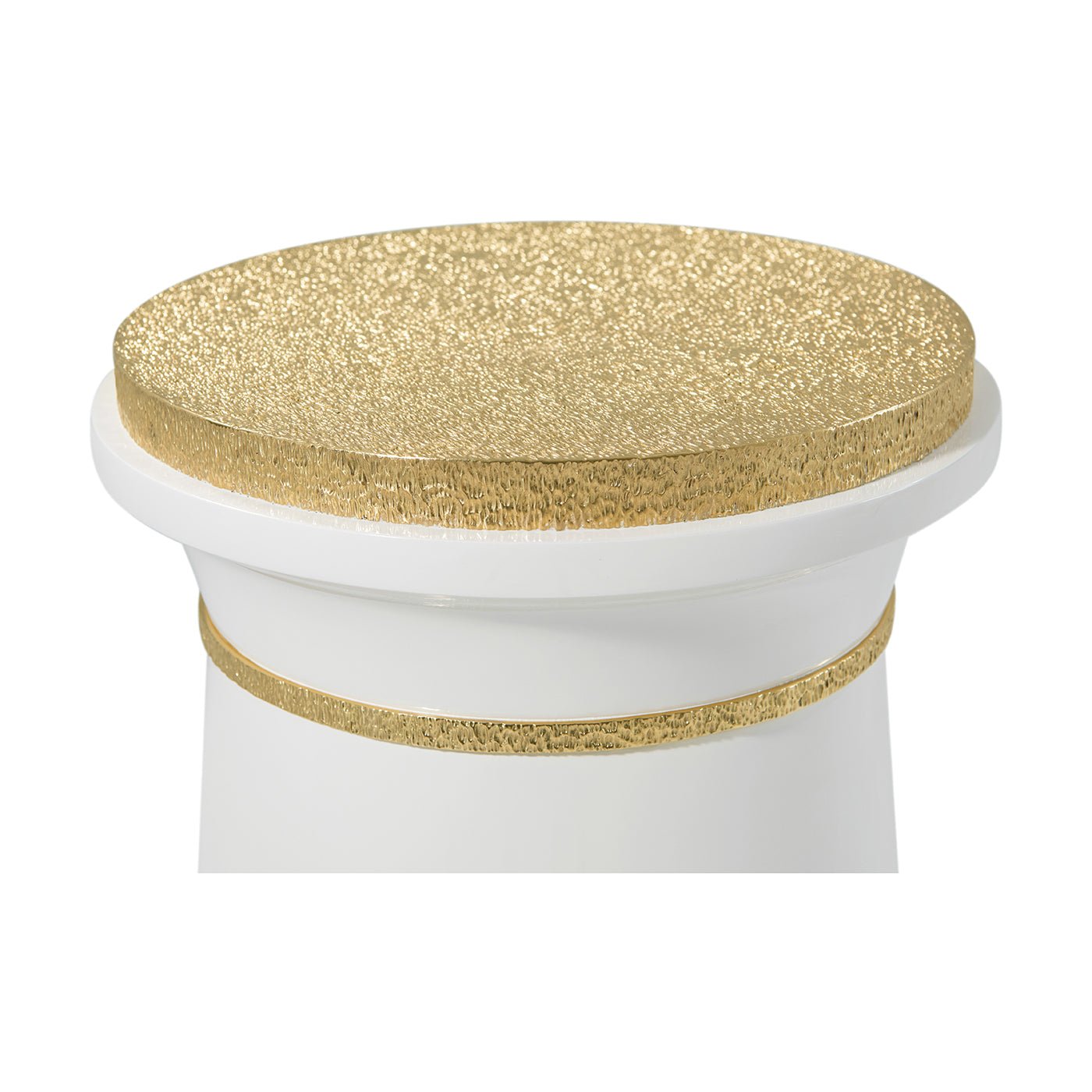 Compacte et pourtant remarquable, cette table d'appoint ronde apporte une sophistication intemporelle à tout espace. Qu'elle soit utilisée à côté d'une chaise ou comme piédestal, elle incarne l'élégance raffinée et les touches métalliques qui définissent l'esthétique Hollywood Regency.