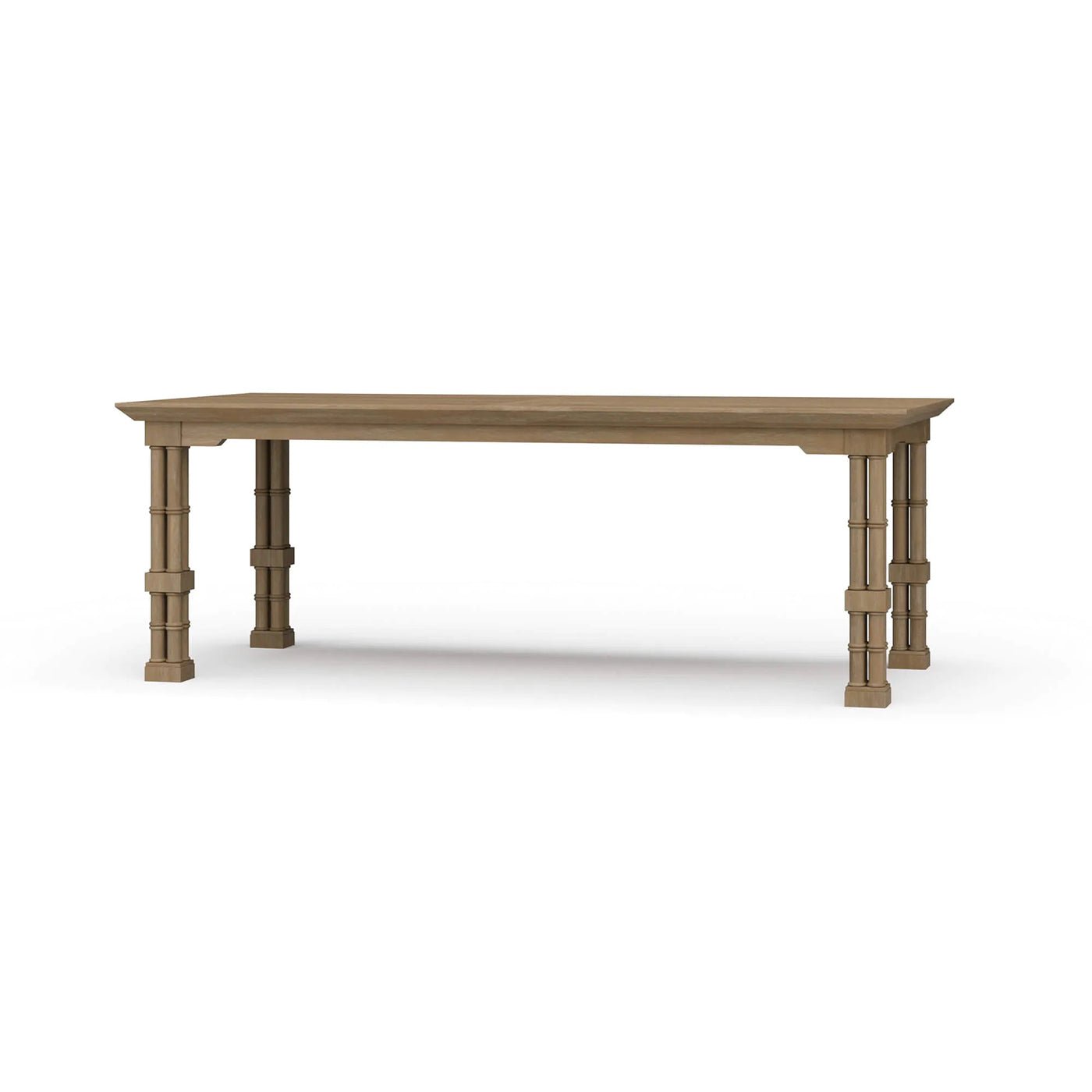 Fusion intemporelle de l'élégance coloniale britannique et du design d'inspiration insulaire, la table à manger Palm Beach Regency (84') allie savoir-faire raffiné et sophistication décontractée. Sculptée à la main en acajou et présentée dans notre finition naturelle banc de sable, cette table remarquable est dotée de pieds en imitation bambou en forme de colonnes anglaises classiques, reliées par une traverse en X qui apporte stabilité et style architectural.